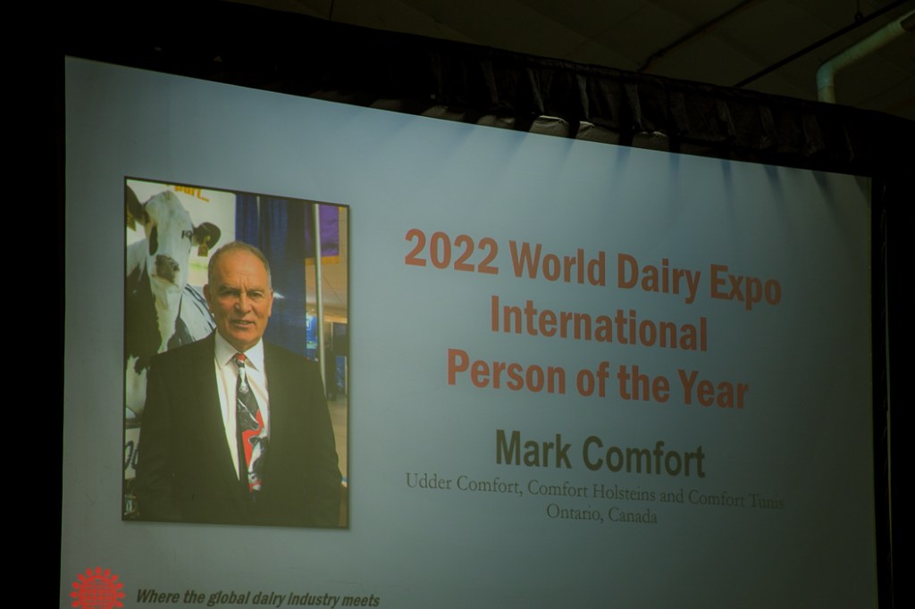MADISON, Wis. — “Who could know that with one phone call to Select Sires 40 years ago would begin a lifelong connection to a great man — George Miller — who invested in me for four decades,” said Mark Comfort of Ontario Canada, as he accepted the 2022 World Dairy Expo International Person of the Year Award last month.
