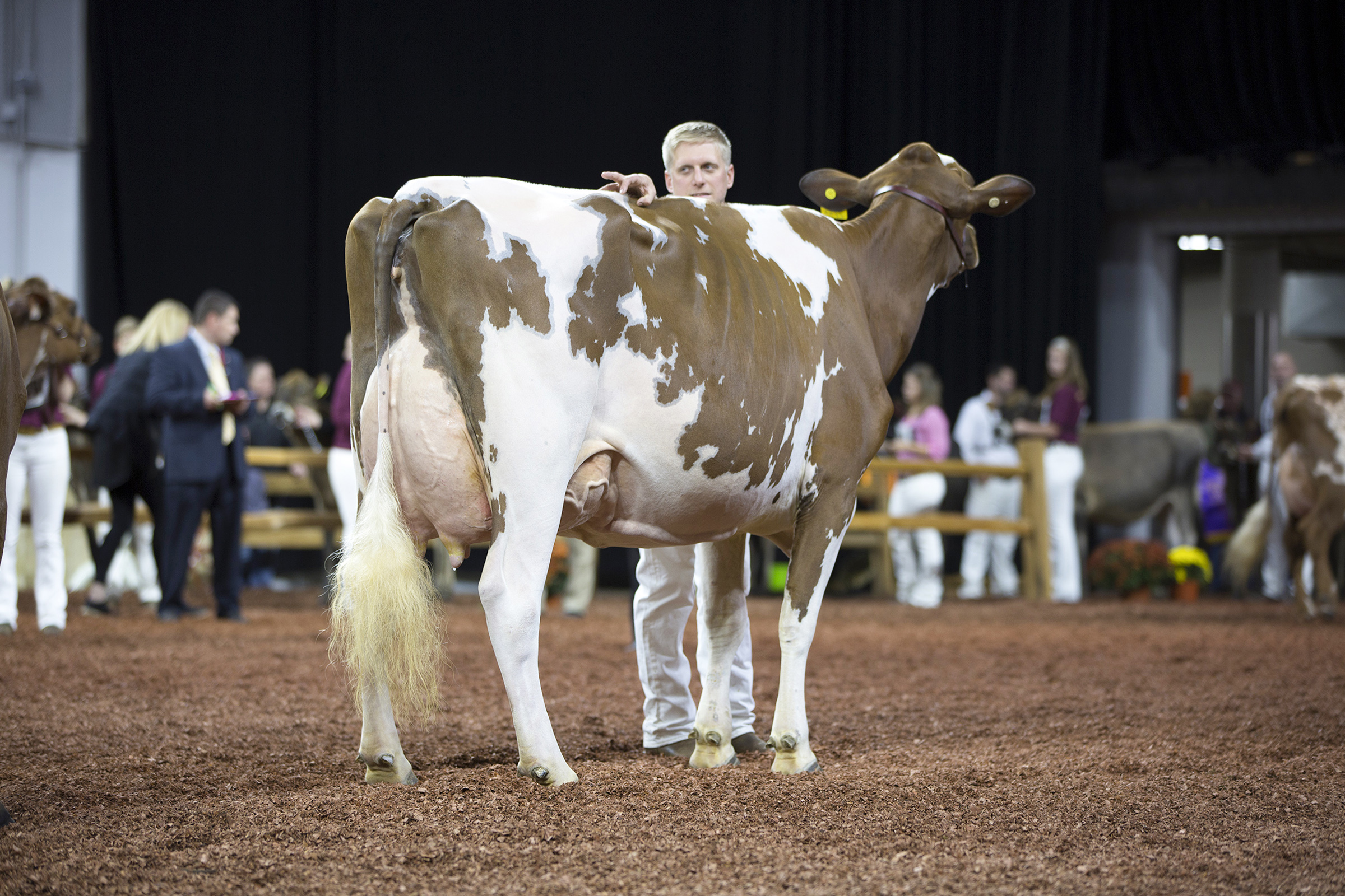 An early-bloomer, Ruth maxed out the Ayrshire classification at EX-94 as a 3-year-old because she had already had three calves. She has had three lactations over 20,000 pounds and is well on her way to 30,000 this lactation, putting over 100 pounds of milk a day in the bucket — whether she’s at home or at the shows.