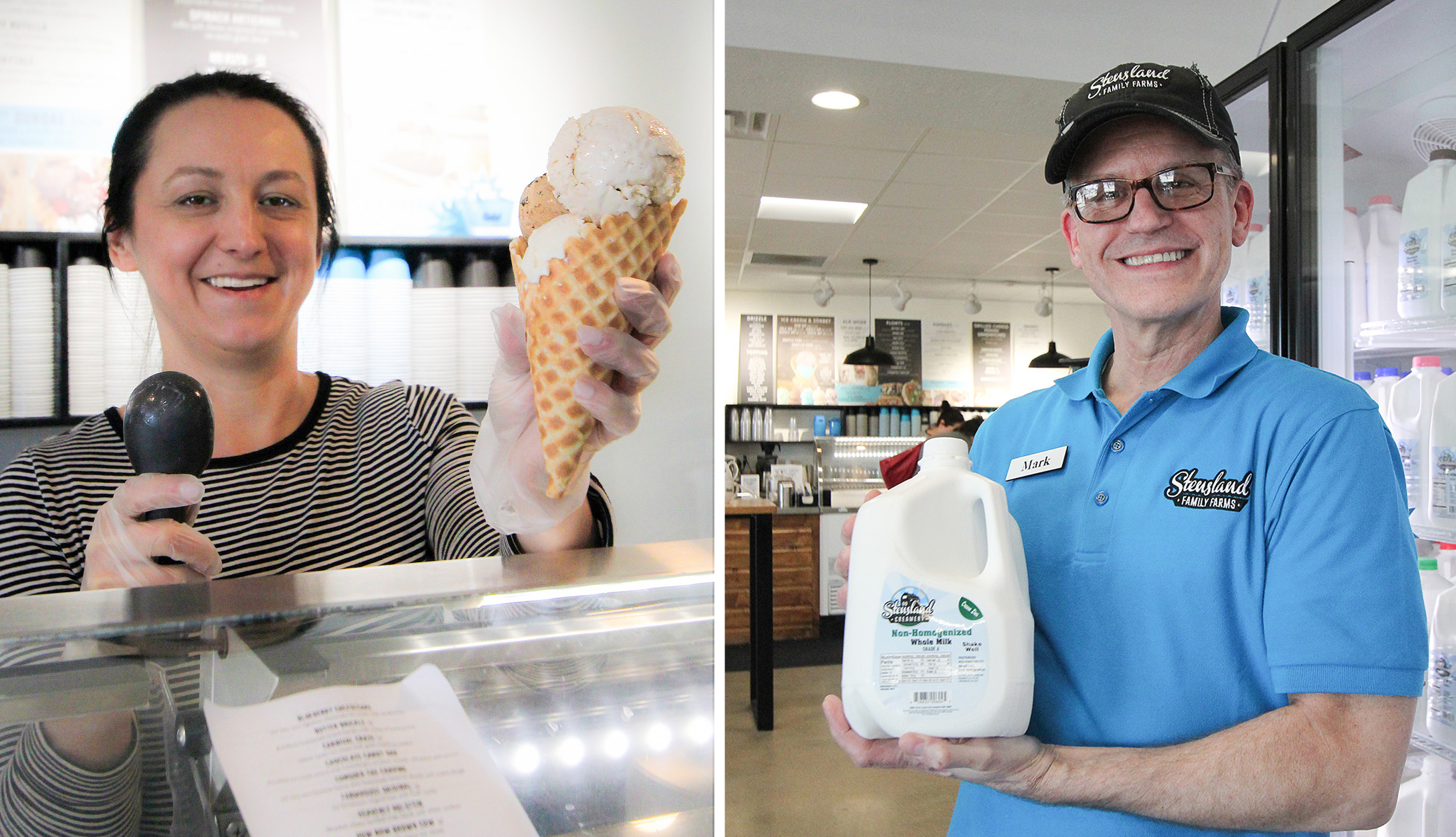 Leah downsized her own event business to join-in on the dairy dream that began with her brothers. She does the Stensland brand-marketing, and she and her mom Mona make all the hand-dipped ice cream on-site, while the container ice cream is made at the creamery on the farm.