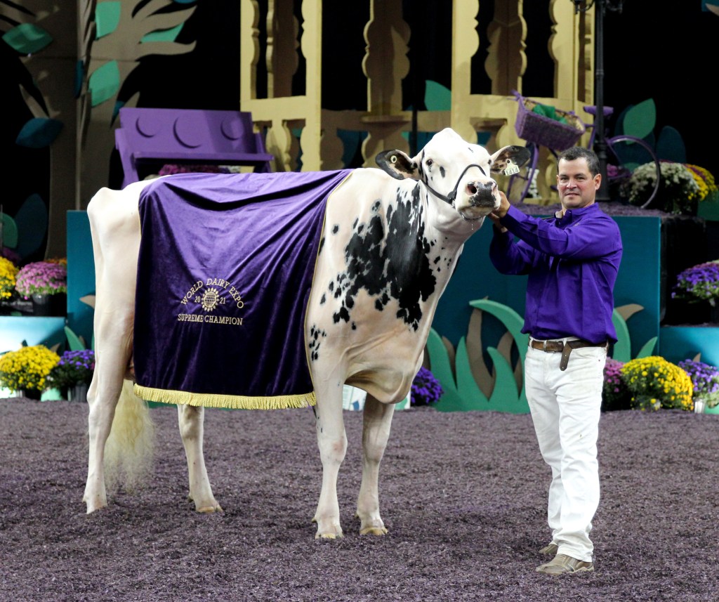 MADISON, Wis. – Amassing quite a following on social media during World Dairy Expo week — with a broad swath of fans on both sides of the border — Erbacres Snapple Shakira, shown by Ferme Jacobs, Cap-Santé, Québec, was ultimately crowned supreme female of the 2021 World Dairy Expo Saturday evening, Oct. 2 in Madison, Wisconsin. Earlier in the afternoon, the aged cow was named grand champion of the International Holstein Show.