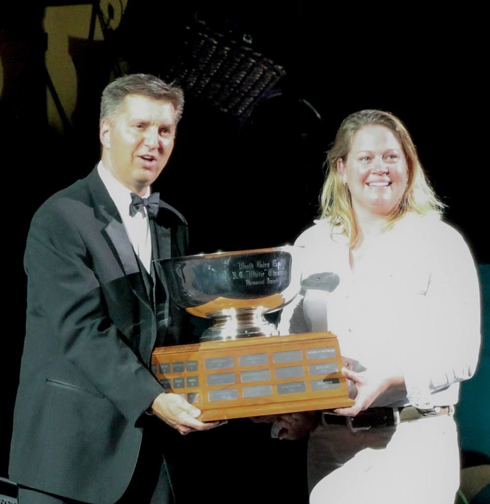 The night before, her granddaughter, a June 1 heifer calf, brought $17,000 in the World Classic sale to Kevin Jorgensen and Mystic Valley Dairy, Sauk City, Wisconsin. The heifer had the distinction of four generations — all present on the grounds for exhibition that day — including Snapple-Red 2E-96, Shakira 2E-97, and Shakira’s EX-91 Diamondback Sparkle.