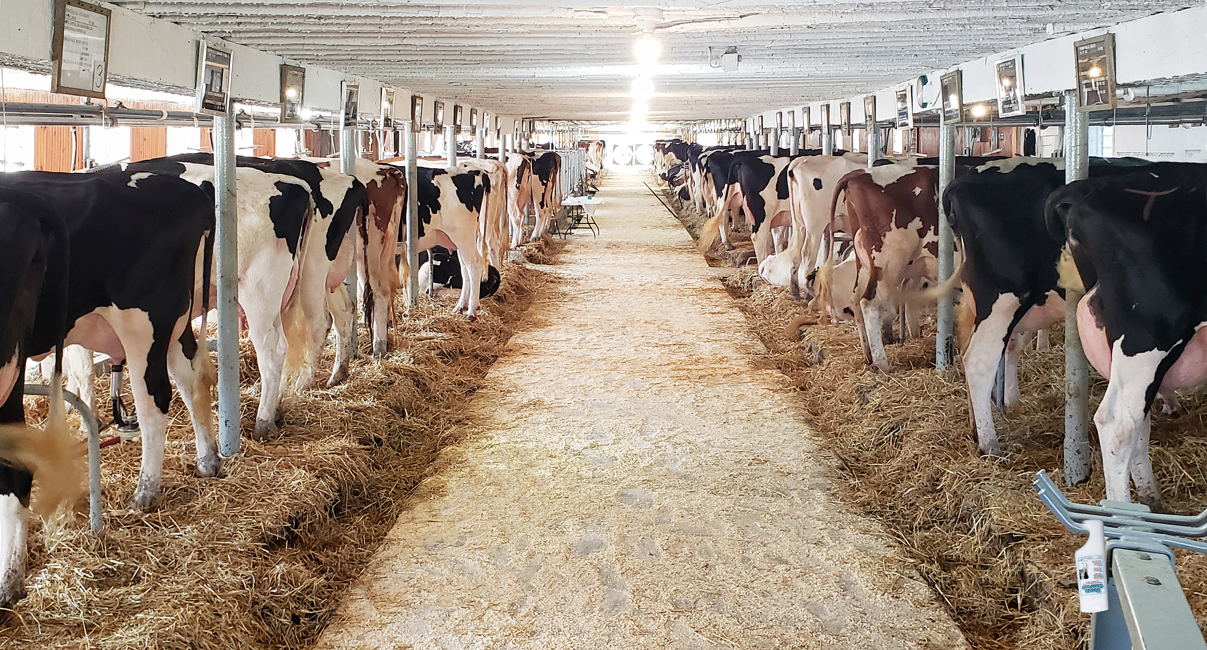 At Ridgedale, cows are milked three times a day. The herd used to be split between Cy’s place and Wayne’s place — less than a mile apart on the same road — until a fire in early 2018 destroyed the barn where Wayne milked 30 head. The family expanded out the back of their main tiestall barn to consolidate milking at one location the next year, turning the other site into a pole barn for machinery.