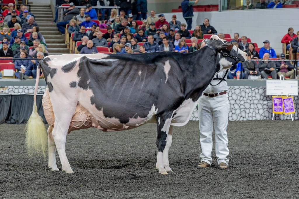 2022 Supreme champion Oakfield Solomon Footloose-ET, now classified EX-96, is owned by Duckett Holsteins, with Vierra Dairy and Tim and Sharyn Abbott. She was bred by Jonathan and Alicia Lamb of Oakfield Corners Farm, Oakfield, New York — named premier breeder of the 2022 WDE International Holstein Show.