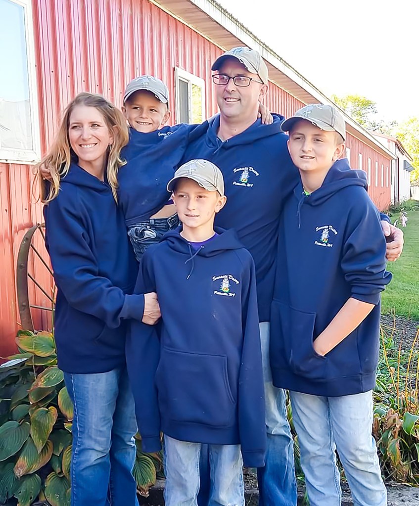Stephanie runs the herd, and Alan does the crops. Their three sons Bryce, Gavin, and Derek love nothing more than to get their barn clothes on and get to the chores.