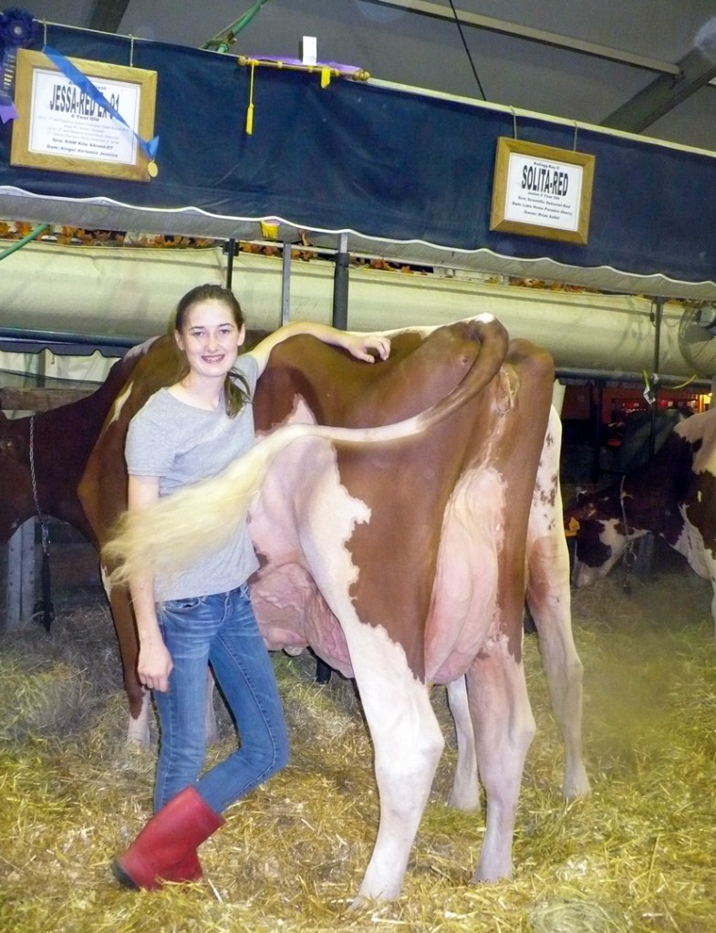 Looking back a decade earlier. It was a Red & White and two homebred Ayrshires that did it for Britney. She walked the supreme pageant in 2011 with Ainger Advent Jessa EX-94, grand champion of the 2011 World Dairy Expo Junior Red & White Show, as well as type and production with 3-6 305-d record of 35,450M 1623F 1037P. Britney’s sister Elizabeth had the intermediate champion of the Junior Red & White Show that year with a homebred fall yearling in milk.